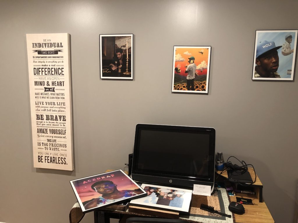 So back to his favorite singers. Another motivator for my son to display their album covers was that we built and framed them on Walmart.com and still spent a mint. They would’ve cost much more had we not pieced together the prints ourselves. Regardless, he didn’t want posters because he wanted them to be nice like art. He wanted the artists to be more art. Made sense.